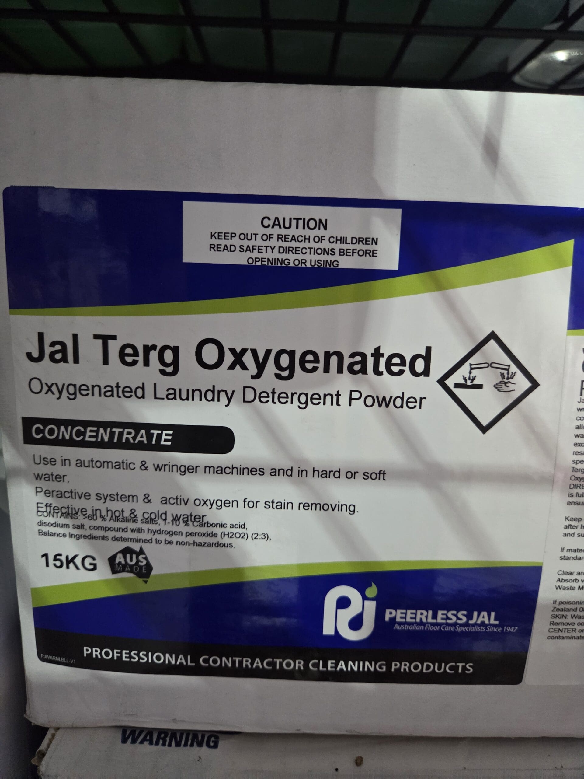 Jal Terg Oxygenated is a high quality, biodegradable laundry detergent powder for use in automatic and wringer type machines. It contains active oxygen to remove stains and brighten both whites and coloureds. Jal Terg Oxygenated contains the proactive system, alkaline builders and water softeners to allow easy machine scrubbing. The Peractive system delivers highly reactive per-acetic acid in the washing liquid even at temperatures of 20 degrees as well as free hydrogen peroxide depending on the excess of per-salt. The combination of both oxidizing agents guarantees the best possible bleaching results on a large number of stubborn stains and at the same time a hygienically clean wash. It has been formulated as a low foam product to make suitable for use in front loading machines. Jal Terg Oxygenated contains a lemon perfume to leave clothes with a fragrant freshness.