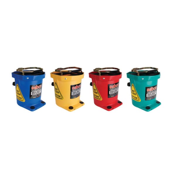 This mop bucket is made from rust resistant, and professional grade metal components. Castors for easy movement. It has a very comfortable hand grip on handle. Spike design on nonslip foot pads for slip resistance. Available colours are blue, green, red, white, and yellow. Replacement castors and roller are also available.