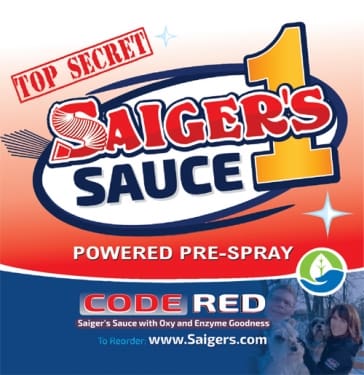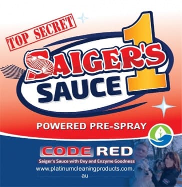 Saiger’s Sauce Code Red combines Oxy and Enzyme to the already awesome Saiger’s Sauce 1. This unscented formula allows for the addition of deodorisers such as the new Saiger’s Cide Lime Citron odour destroyer.