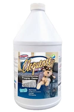 UN-EQUALED COMBINATION OF PROPRIETARY SURFACTANTS Our specific blend of wetting agents and emulsifiers are designed to remove tough oils and soils commonly found in upholstery fibers. Eloquence was designed for improved cleaning performance specifically for those difficult fine fabric/wool cleaning challenges. Eloquence has an un-equaled ability to cut through body oils, odours and every day household wear and tear of your fine fabrics and wool carpets/rugs.