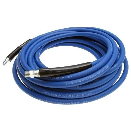 this hose will withstand everyday abuse. Steel braid makes it tough and also very flexible. Meets manufacturer's specifications for all truckmount high-temperature machines. The lengths includes protector sleeves on both ends and male pipe ends.